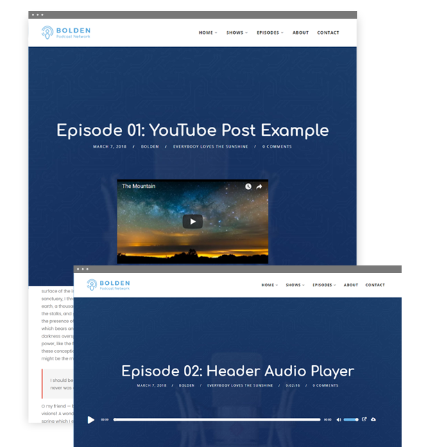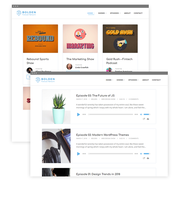 Built For Podcast NetworksBolden was built with Podcasting in mind all along. It can be the go-to theme for Podcast Networks and single podcast channels!